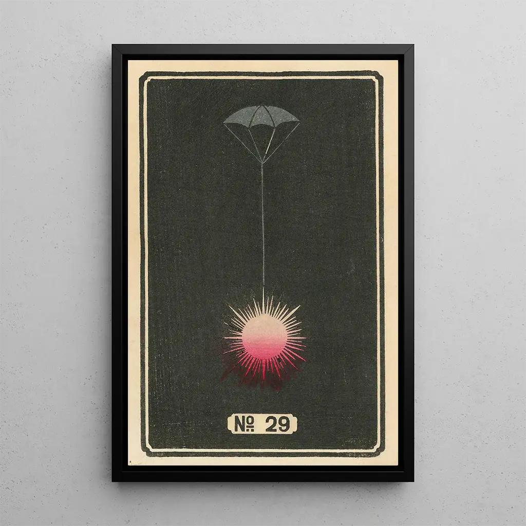 De "Feux d'artifice nocturnes n° 29" af Jinta Hirayama indfanger selve essensen af magien ved stjerneklar nat. Dette livlige kunsttryk skiller sig ud med en palette af strålende farver, hvor røde, blå og guld nuancer smelter harmonisk sammen for at skabe en festlig og fortryllende atmosfære. Kunstnerens teknik, der kombinerer akvarel og blæk, giver liv til hver lysende eksplosion, hvilket fremkalder følelser af glæde og forundring. De dynamiske former og de flydende bevægelser i kunsttrykket synes næsten at danse på lærredet, hvilket inviterer betragteren til at dykke ned i dette univers af fejring og flygtig skønhed.
