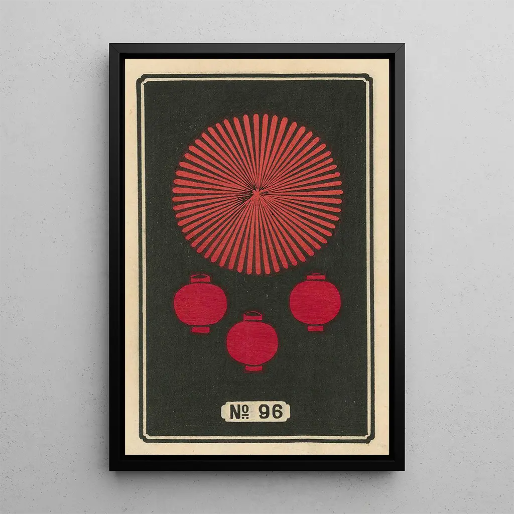 "De nattlige fyrværkeri nr. 96" af Jinta Hirayama indfanger essensen af en festlig aften, hvor de lysende stykker danser på den mørke himmel. Kompositionen er en symfoni af livlige farver, fra skarpe røde til dybe blå, hvilket skaber en slående kontrast til den omkringliggende mørke. Kunstnerens teknik, der kombinerer akvarel og blæk, giver lethed til hele værket, som om fyrværkeriet får liv. Atmosfæren er både glædesfyldt og eftertænksom, hvilket inviterer betragteren til at forsvinde ind i denne flygtige fejring af skønhed.