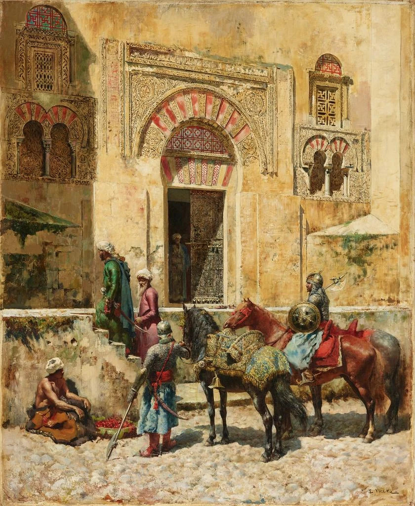 Edwin Lord Weeks, født i 1849, er en af de mest indflydelsesrige amerikanske kunstnere i det 19. århundrede inden for orientalismen. En utrættelig rejsende, har han krydset Østens lande, hvor han har ladet sig inspirere af den lokale kultur og traditioner, hvilket har sat dybe spor i hans værker. Hans fascination af islamisk arkitektur og dagliglivet for østlige folk skinner igennem i hans lærreder, hvor han formår at fange sjælen i de steder, han skildrer. Weeks har formået at bygge en bro mellem Vesten og Østen og tilbyder seerne en romantiseret, men respektfuld, vision af disse civilisationer. Hans indflydelse strækker sig ud over hans egen kunstneriske produktion,
