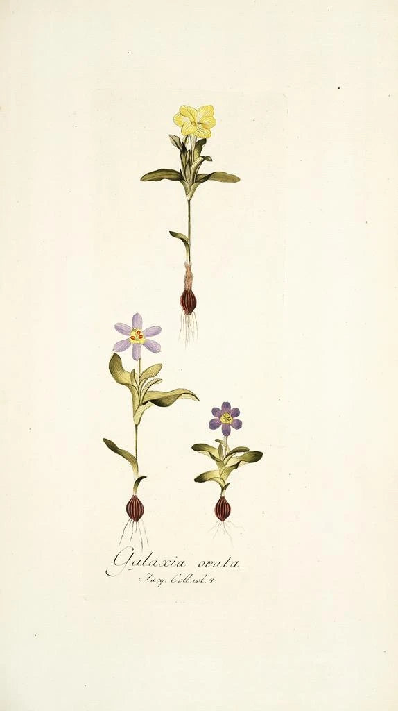 Nikolaus Joseph Freiherr von Jacquin, botaniker og kunstner fra det 18. århundrede, formåede at forene videnskab og kunst i sine værker. Født i 1727, blev han påvirket af de botaniske opdagelser i sin tid, især under sine rejser i Sydamerika. Hans værker, herunder Galaxia ovata, vidner om hans engagement i at repræsentere floraen med videnskabelig præcision, samtidig med at de bevarer en æstetisk dimension. Jacquin er anerkendt for sin medvirken til væksten af kunstnerisk botanik, et område der har gjort det muligt at dokumentere mangfoldigheden af plantearter, samtidig med at det har tiltrukket et publikum, der søger skønhed og viden.