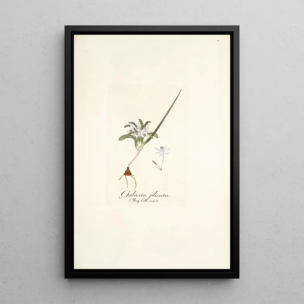 Valget af kunsttrykket af Galaxia plicata er at vælge et dekorativt stykke, der vil berige dit opholdsrum. Uanset om det er i stuen, på kontoret eller i soveværelset, tilføjer dette billede et strejf af friskhed og elegance. Kvaliteten af kunsttrykket sikrer en trofast gengivelse af det originale værk, hvilket gør det muligt at værdsætte hver nuance og tekstur. Ved at integrere dette værk i din indretning skaber du et inspirerende miljø, samtidig med at du hylder Nikolaus Joseph Freiherr von Jacquin’s botaniske kunst, en sand skat for naturelskere og kunstelskere.