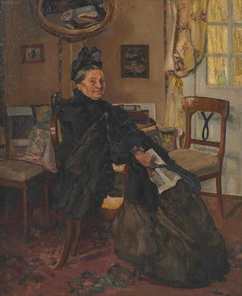 Gammel kvinde sidder i venteværelset - Otto Bruenauer