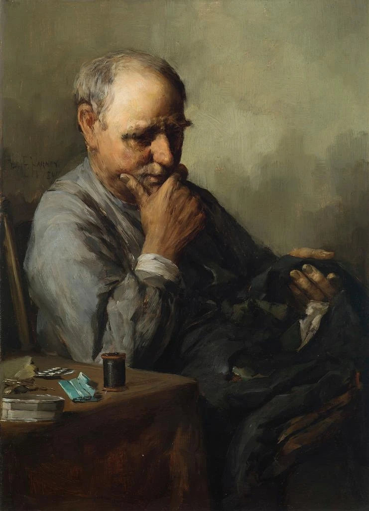 Maleri Gammel mand, der lapper - Paul E. Harney