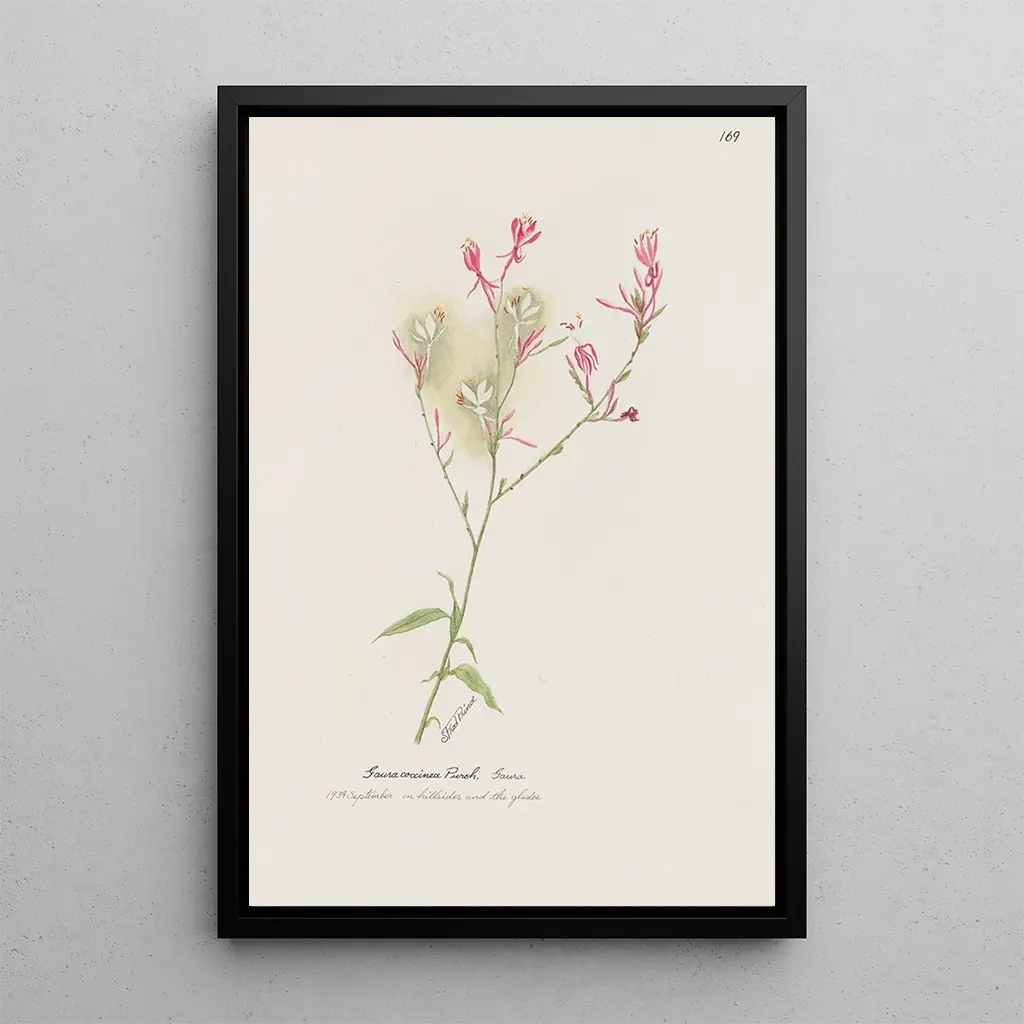 Kunsttrykket Gaura af S Fred Prince tager os med til en livlig have, hvor blomsterne danser under den lette brise. Pastelfarverne, der spænder fra blid rosa til strålende hvid, blander sig harmonisk og skaber en fængslende visuel sammensætning. Kunstnerens teknik, der bruger flydende og delikate penselstrøg, giver en fornemmelse af bevægelse og lethed, som om blomsterne blomstrer foran vores øjne. Dette værk fremkalder naturens flygtige skønhed og inviterer til en blid og drømmende refleksion.