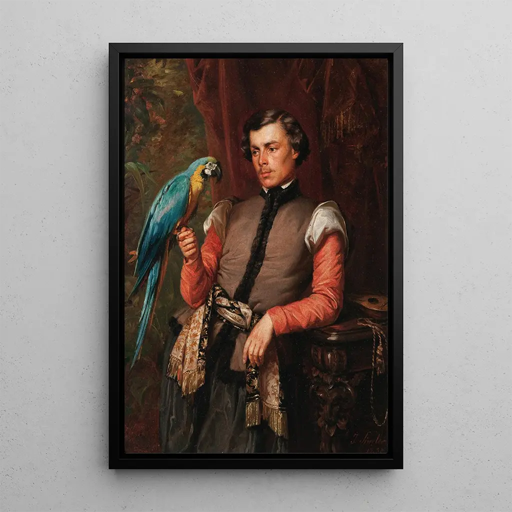 At vælge kunsttrykket af "Gentilmand med en papegøje" er et klogt valg for at forskønne dit hjem. Uanset om det er i stuen, på kontoret eller i soveværelset, vil dette kunsttryk tilføre elegance og sofistikation til din indretning. Dets reproduktionskvalitet sikrer en trofast gengivelse af de originale detaljer, hvilket giver mulighed for fuldt ud at værdsætte Simmlers talent. Med sin ubestridelige æstetiske appel bliver dette lærred et centralt punkt, der vækker nysgerrighed og beundring hos dine gæster. Ved at integrere dette værk i dit rum inviterer du ikke blot kunsten ind i din hverdag, men også en rig og fascinerende historie.