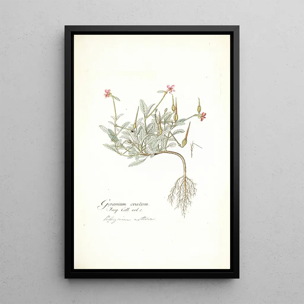 Kunsttrykket af Geranium ovatum er et perfekt dekorativt valg for at tilføre natur til dit hjem. Uanset om det er i stuen, på kontoret eller i soveværelset, tilpasser dette lærred sig alle dekorationsstile, uanset om de er moderne eller traditionelle. Dets trykkvalitet sikrer en trofast gengivelse af de livlige farver og de fine detaljer i det originale værk, hvilket skaber et fængslende fokuspunkt. Med sin tidløse charme inviterer dette værk til ro og flugt, og gør hvert blik til et øjeblik af beroligende eftertanke.