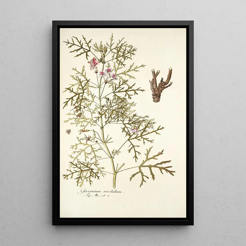 Geranium revolutum-kunsttrykket af Nikolaus Joseph Freiherr von Jacquin er en sand hyldest til naturens skønhed. Dette værk, skabt med imponerende botanisk præcision, fremhæver de delikate geraniumblomster, hvis nuancer af rosa og violet smelter harmonisk sammen med en grøn baggrund. Akvarelteknikken, anvendt med dygtighed, giver dette lærred en lethed og gennemsigtighed, der fanger øjet. Atmosfæren, der udspringer af dette kunsttryk, er både rolig og opkvikkende, og inviterer betragteren til at dykke ned i en rig blomsterverden fuld af detaljer.