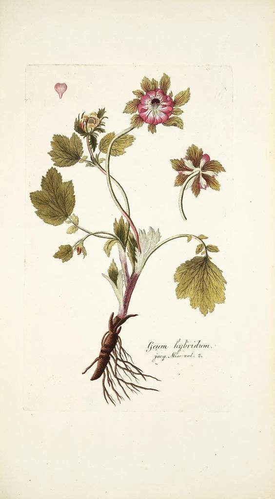 Nikolaus Joseph Freiherr von Jacquin, en ikonisk figur fra det 18. århundrede, formåede at forene kunst og naturvidenskab i sine værker. Botaniker og illustratør, han rejste gennem Europa og videre, indsamlede eksemplarer og lavede illustrationer med enestående præcision. Hans værker, herunder Geum hybridum, afspejler ikke kun hans kunstneriske talent, men også hans ønske om at dele skønheden og mangfoldigheden af planter. Som medlem af Videnskabsakademiet bidrog Jacquin til fremskridt inden for botanik, hvilket gør ham til en central figur i historien om videnskabelig kunst. Hans indflydelse mærkes stadig i dag, både inden for kunst og videnskab.