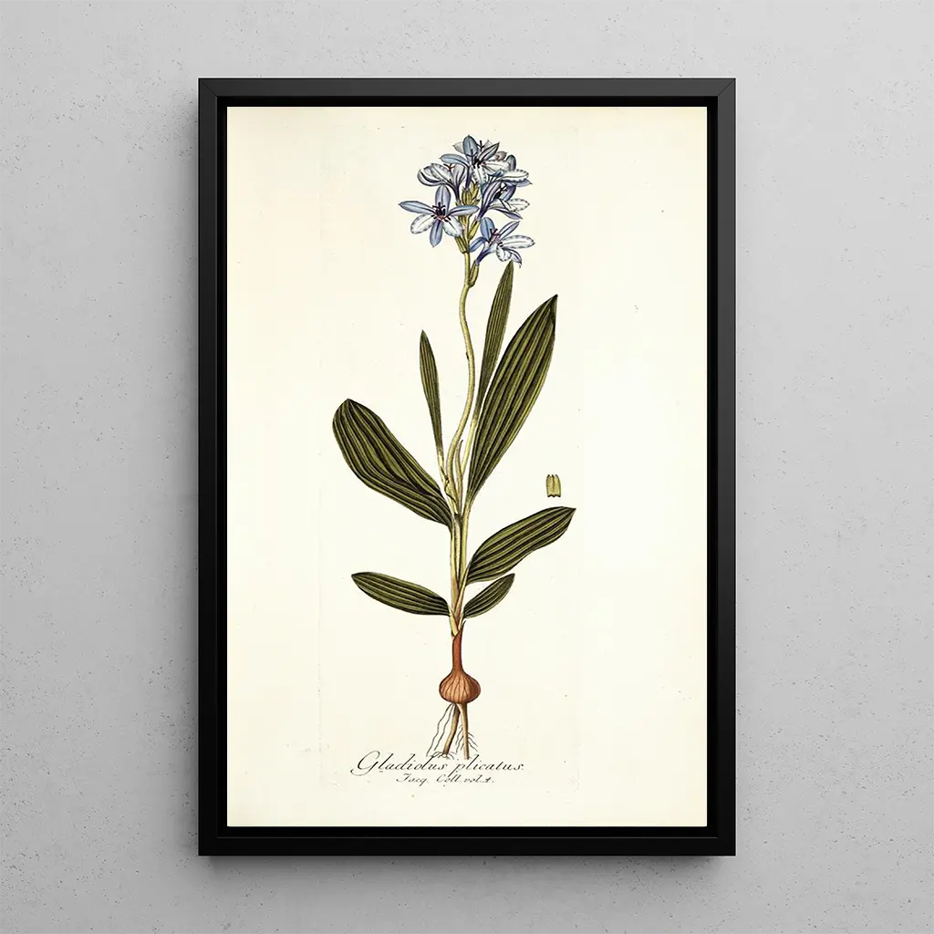 Det kunsttryk Gladiolus plicatus af Nikolaus Joseph Freiherr von Jacquin er en sand hyldest til den naturlige skønhed. Dette værk, skabt med en præcis botanisk teknik, fremhæver de delikate nuancer af rosa og grøn, der smukt smelter sammen. De fine detaljer i blomsterbladene og bladene, næsten håndgribelige, skaber en atmosfære af ro og eftertanke. Kompositionen, centreret omkring blomsten, fanger øjet med det samme og inviterer til at udforske naturens finurligheder.