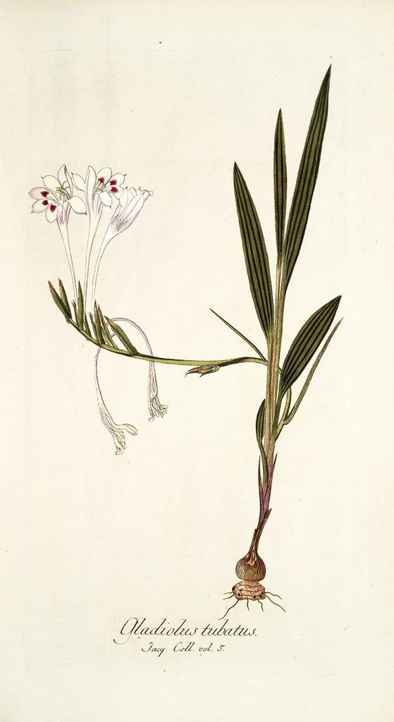 Nikolaus Joseph Freiherr von Jacquin, botaniker og kunstner fra det 18. århundrede, formåede at forene kunst og videnskab på en ny måde. Uddannet i Wien, blev han påvirket af de botaniske opdagelser i sin tid og søgte at udødeliggøre plantens skønhed gennem sine værker. Gladiolus tubatus er et perfekt eksempel på hans tilgang, hvor han kombinerer en troværdig gengivelse af blomsterne med en raffineret æstetik. Hans arbejde har ikke blot beriget kunstverdenen, men også bidraget til fremskridt inden for botanisk viden, hvilket gør ham til en pioner på dette område.