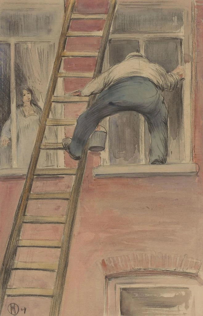 Maleri Laveur de vitres - Herman Heijenbrock | Kunsttryk Source: Tableau Laveur de vitres - Herman Heijenbrock | Reproduction