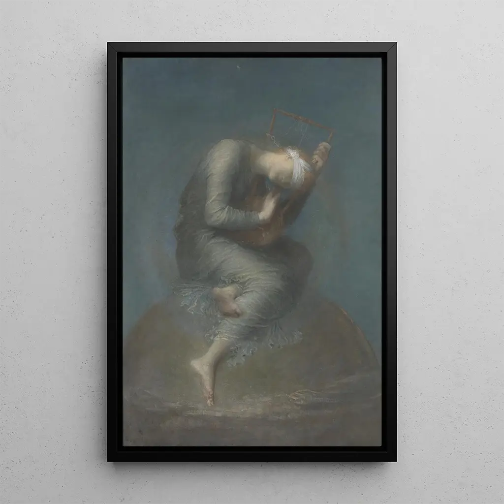I lærredet "Espoir" fanger George Frederic Watts essensen af menneskets aspiration. Dette værk, præget af symbolisme, skildrer en delikat kvindefigur med lukkede øjne, der holder en lyre, symbol på musik og harmoni. De bløde farver og pastelnuancer skaber en fredelig, næsten æterisk atmosfære, mens den mørke baggrund fremhæver protagonistens lysstyrke. Watts' teknik, der kombinerer oliemaling og omhyggelige detaljer, inviterer betragteren til en introspektiv refleksion, der afslører de kampe og håb, der bor i os alle.