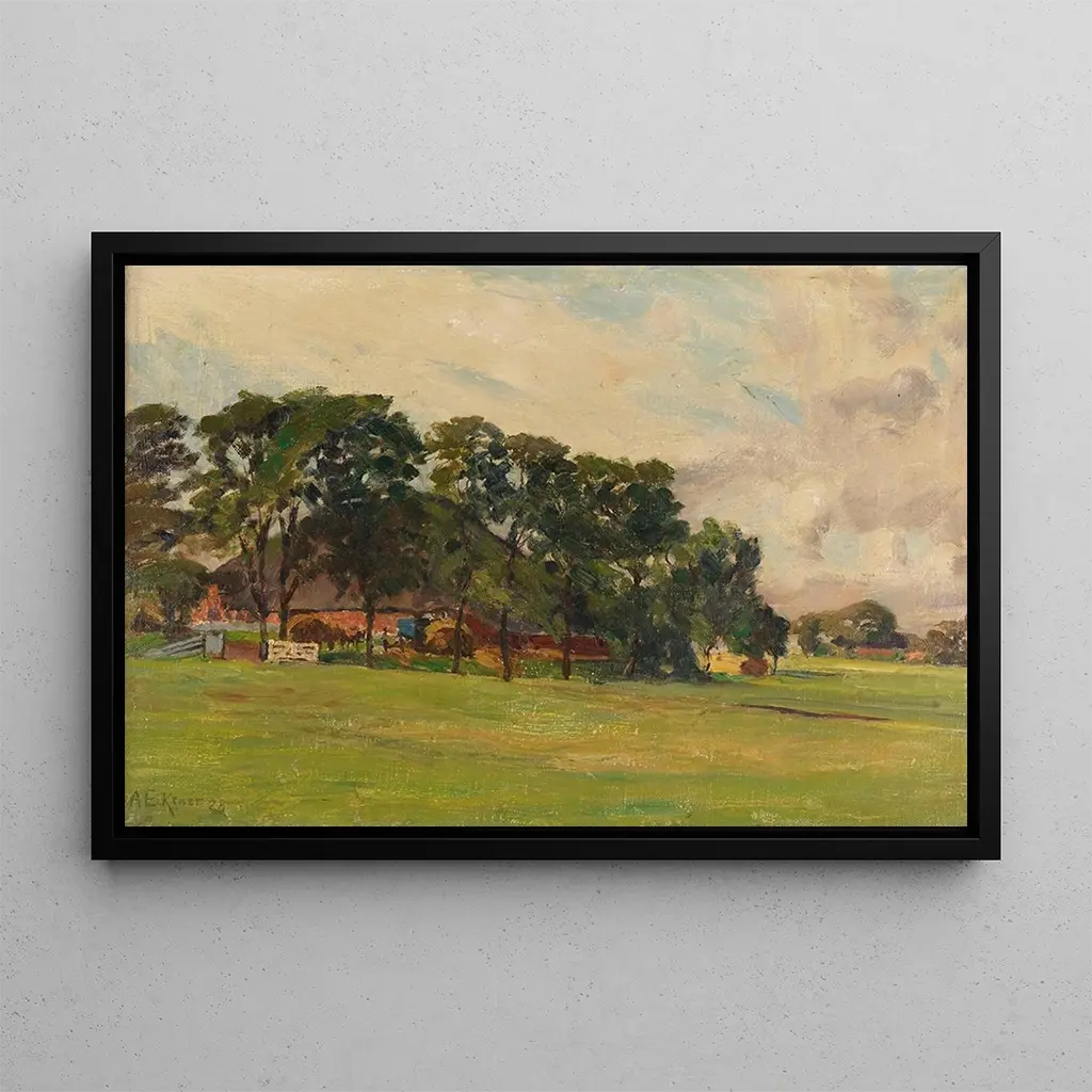 La kunsttryk Haubarg à Eiderstedt d'Alex Eckener nous transporte dans un paysage rural typique du nord de l'Allemagne. Cette toile dépeint une ferme traditionnelle, le haubarg, caractérisé par son architecture unique et son intégration dans le paysage environnant. Les couleurs terreuses et les nuances de vert évoquent la richesse de la nature, tandis que la lumière douce illumine la scène, créant une atmosphère chaleureuse et accueillante. Eckener réussit à capturer l'essence de la vie rurale, où l'homme et la terre coexistent en harmonie, invitant le spectateur à apprécier la simplicité et la beauté du quotidien.