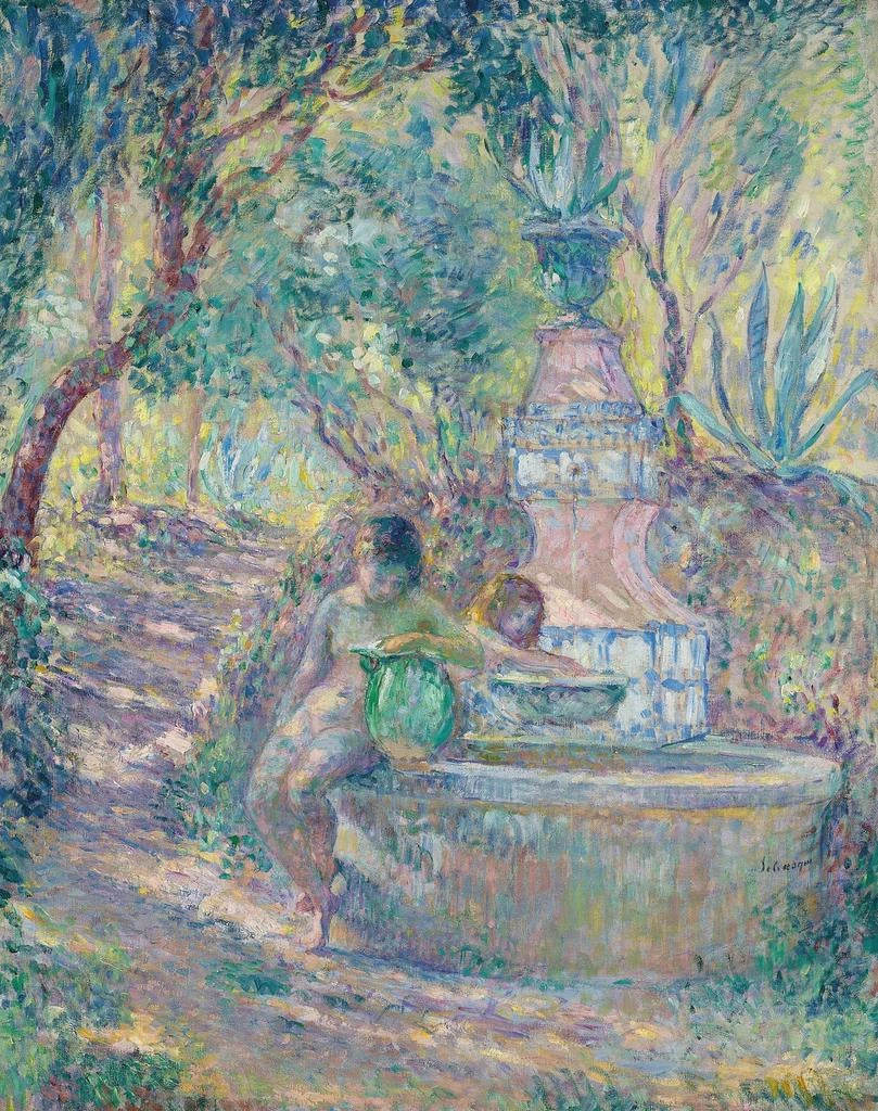 Saint-Tropez, to unge piger ved fontænen - Henri Lebasque
