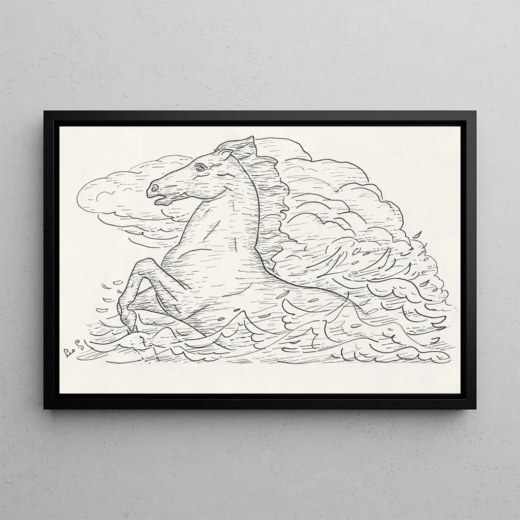 Kunsttrykket af Cheval dans la Mer fordyber os i en livlig scene, hvor dyrets kraft møder havets uendelighed. Leo Gestel, med sin dristige teknik, bruger strålende farver til at fange bevægelsen og energien i dette flygtige øjeblik. Bølgerne bryder omkring hesten, hvilket skaber en dynamik, der vækker frihed og styrke til live. Lyset spiller en vigtig rolle, oplyser formerne og fremhæver teksturerne i vandet og hesten. Dette værk, både vildt og poetisk, inviterer os til at føle den dybe forbindelse mellem mennesket, dyret og det maritime element.