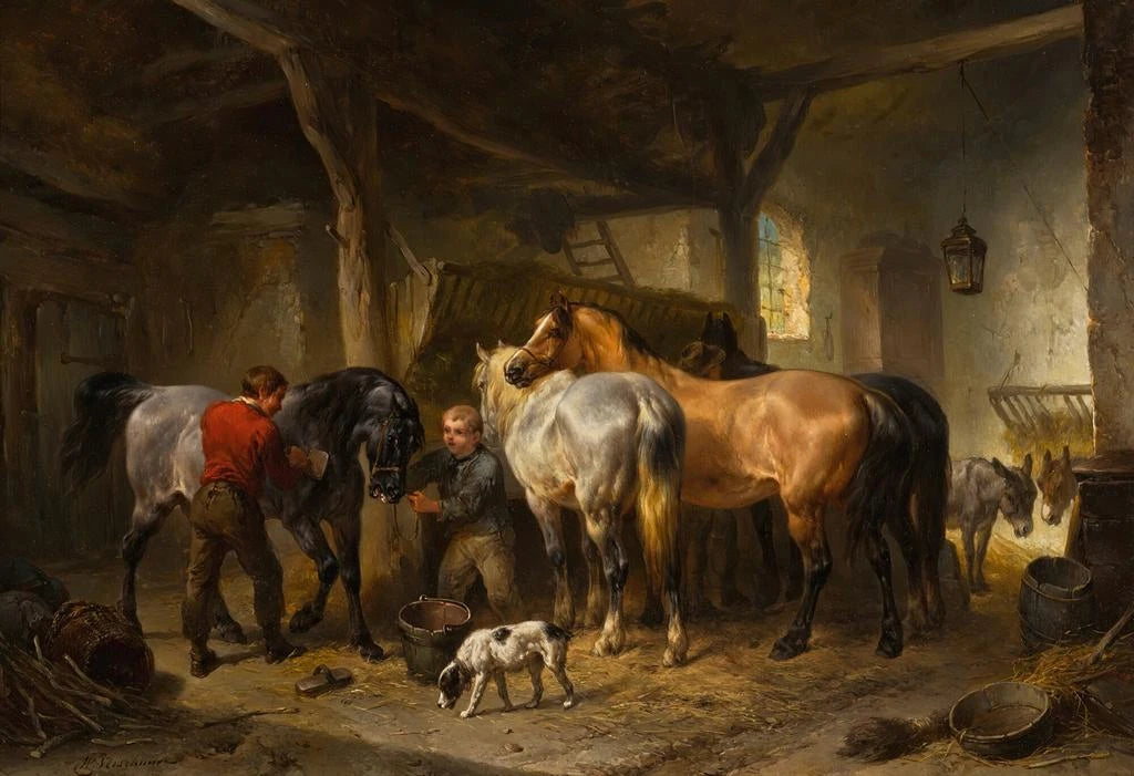 Kunsttryk | Heste i en stald - Wouterus Verschuur