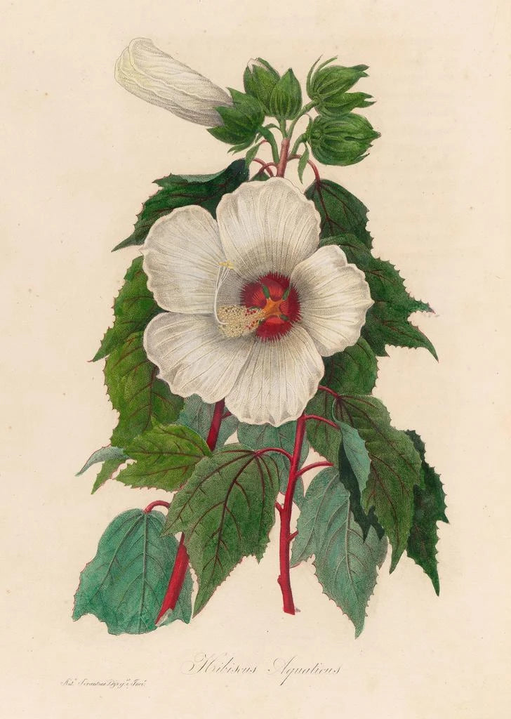 Maleri Hibiscus aquaticus - Gaetano Savi | Kunsttryk