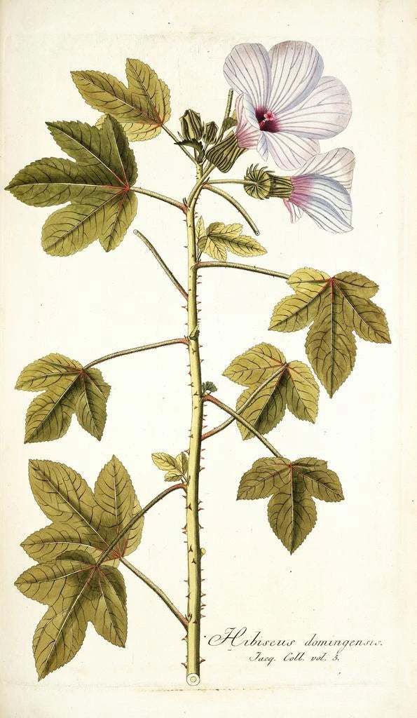 Maleri Hibiscus domingensis - Nikolaus Joseph Freiherr von Jacquin | Kunsttryk