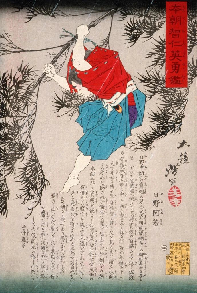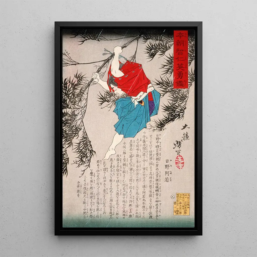 Kunsttryk | Hino Kumawaka hoppende fra bambustræ - Tsukioka Yoshitoshi