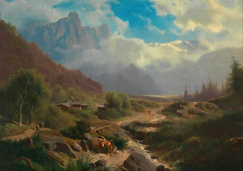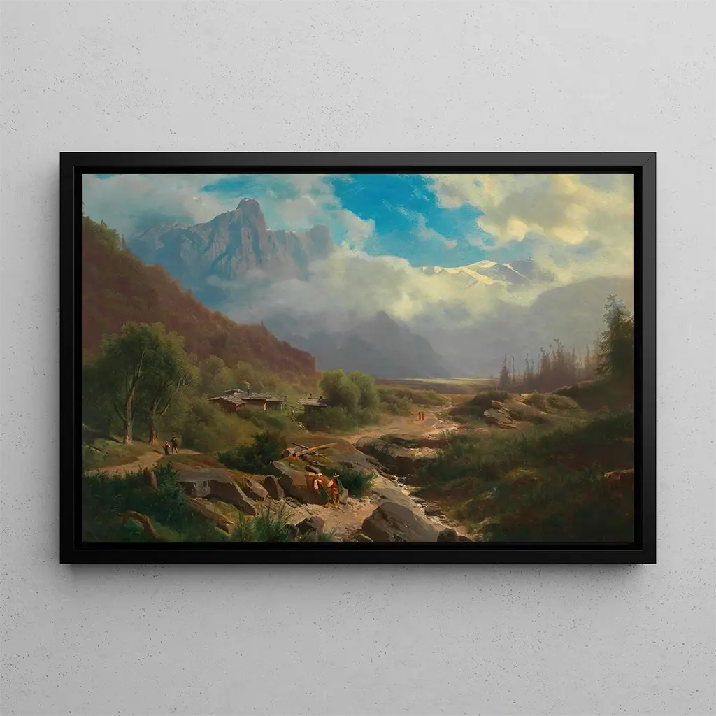Landskab af høje tinder: en flugt til de sneklædte toppe. Dette fængslende kunsttryk, "Landskab af høje tinder", tager os med til en verden, hvor majestæten af toppe blander sig med dalenes blidhed. De livlige farver og de delikate nuancer af blå og grøn skaber en fredelig, næsten mystisk atmosfære. Leopold Heinrich Voeschers teknik, der bruger flydende og præcise penselstrøg, giver liv til denne alpine scene, hvor lyset leger over bjergenes sider. Hvert detalje, fra grantræer til skyer, bidrager til en harmonisk komposition, der inviterer til eftertanke og flugt. Dette landskab er en sand hyldest til naturen, en opfordring til at udforske højdernes vidundere. Leopold Heinrich Voescher: en mester i romantisk landskab. Kunstner fra det XIX. århundrede, Leopold Heinrich Voescher er kendt for sine fortryllende landskaber, der fanger essensen af naturen. Påvirket af den romantiske bevægelse, har han viet sig til at skildre alpine landskaber, med det formål at udtrykke de følelser, den naturlige skønhed vækker. Hans karriere, præget af en opmærksomhed på detaljer og en rig palet, vidner om hans engagement i landskabskunsten. Voescher har formået at etablere sig i kunstverdenen takket være sin evne til at oversætte majestæten af bjergene og roen i søerne til tidløse kunstværker. Hans arv består, og inspirerer mange samtidige kunstnere. En dekorativ erhvervelse med mange fordele. Kunsttrykket af "Landskab af høje tinder" er et ideelt valg for at forskønne dit hjem, uanset om det er i en stue, et kontor eller et soveværelse. Dets trykkvalitet og trofasthed mod det originale værk sikrer en uomtvistelig æstetisk tiltrækning. Dette kunsttryk, med sine beroligende nuancer og afbalancerede komposition, tilføjer et strejf af ro til ethvert rum. Ved at hænge det op på dine vægge inviterer du ikke kun naturens skønhed ind i dit hjem, men også en atmosfære, der fremmer refleksion og afslapning. Det er et dekorativt stykke, der vil tiltale dine gæster og berige dit miljø.