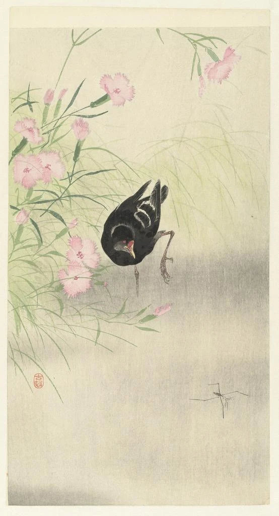 Kunsttryk | Vandhøne nær en blomstrende plante - Ohara Koson