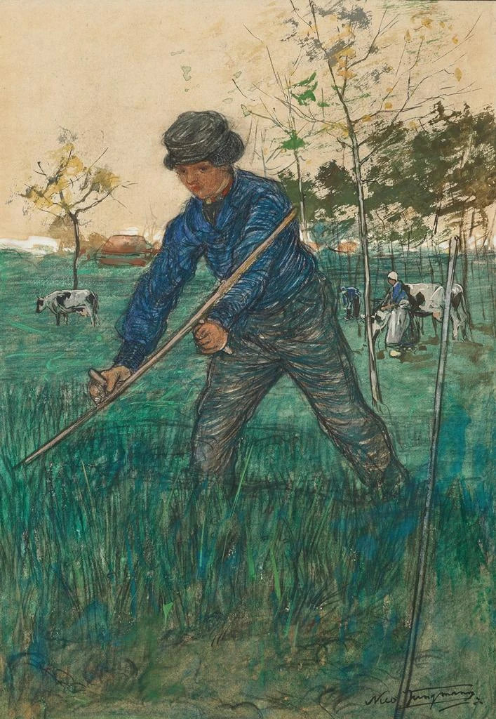 Nicolaus Wilhelm Jungmann, aktiv i det 19. århundrede, er kendt for sine skildringer af det landlige liv og naturlige landskaber. Påvirket af romantikkens bevægelse søger han at udtrykke harmonien mellem mennesket og dets omgivelser. Hans karriere strækker sig over flere årtier, hvor han udvikler en unik stil, der blander præcision og følsomhed. Jungmann har formået at fange essensen af dagligdagen i en tid, hvor industrialiseringen begyndte at ændre landskabet. Hans værker, herunder "Le Faucheur", vidner om hans tilknytning til naturen og enkeltheden i det landlige liv, hvilket gør ham til en vigtig kunstner i sin tid.