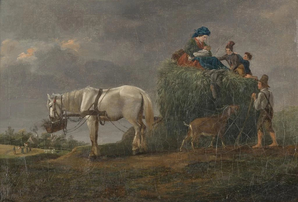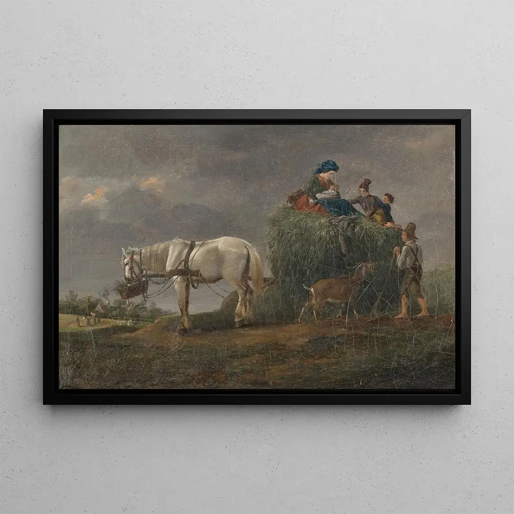 "La charrette de foin" er en kunsttryk, der indfanger essensen af den landlige livsstil i det 19. århundrede. Dette kunsttryk skildrer en livlig scene, hvor bønder arbejder omkring en høstak, under en lysende himmel. De varme farver, fra jordnære brune til strålende grønne, fremkalder rigdommen i landbrugslandskabet. Teknikken med maleri, kendetegnet ved detaljerede finisher og blød belysning, skaber en levende og dynamisk atmosfære, der inviterer betragteren til at fordybe sig i dette enkle og ægte liv.