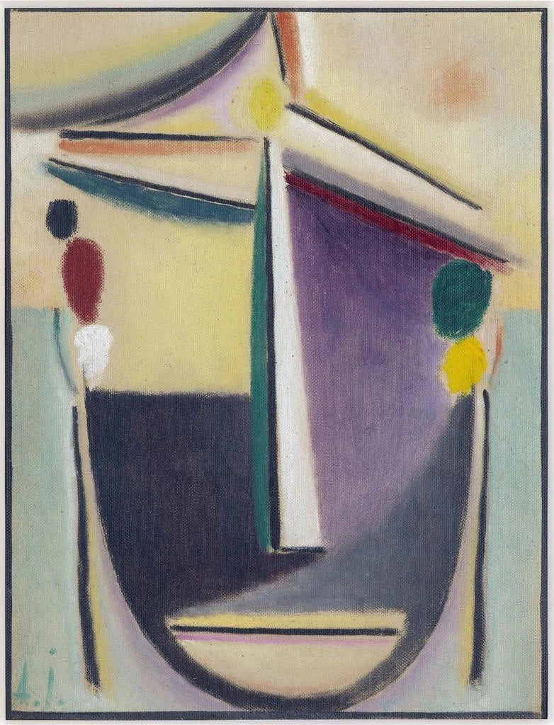 Kunsttryk | Abstrakt hoved sort gul lilla - Alexej von Jawlensky