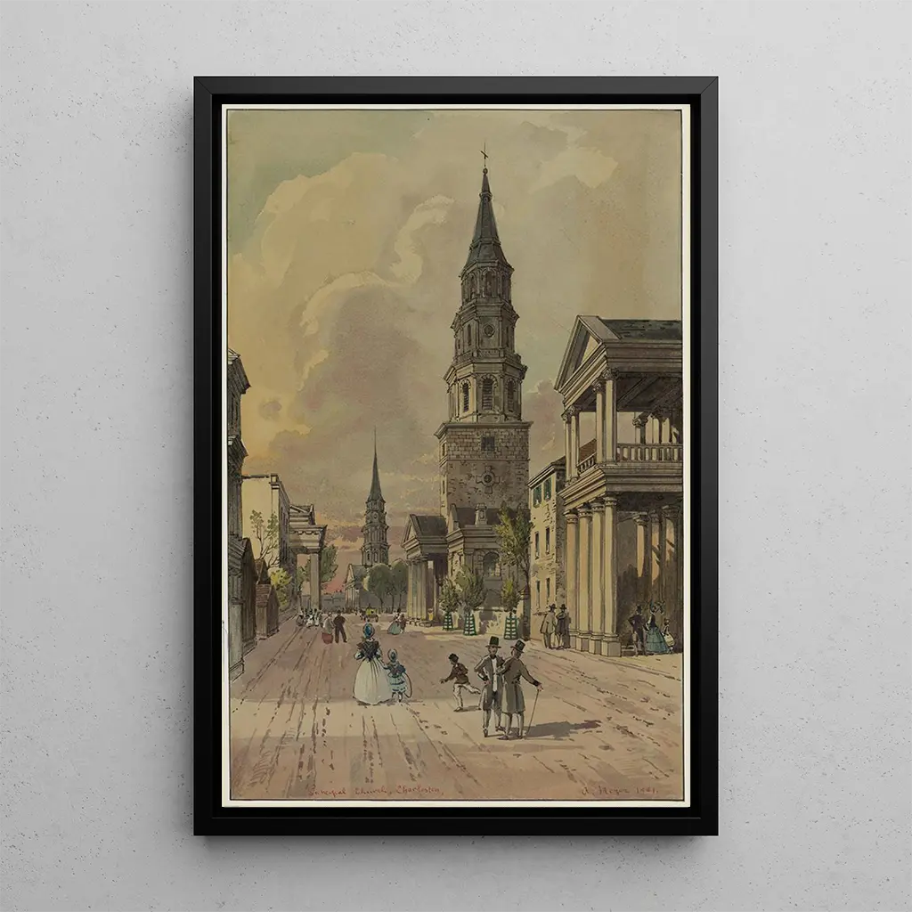 Charleston hovedkirke: en hyldest til hellig arkitektur Kunstværket "Charleston hovedkirke" tager os med til hjertet af en fredelig og majestætisk atmosfære. Kompositionen fremhæver rene linjer og raffinerede arkitektoniske detaljer, der fanger lyset på en måde, der skaber en åndelig stemning. De bløde nuancer, fra beige til pastelblå, fremkalder ro og eftertanke. Den anvendte teknik, sandsynligvis olie på lærred, gør det muligt at gengive materialernes teksturer med stor nøjagtighed, hvilket fremhæver skønheden i denne ikoniske kunsttryk. Hvert penselstrøg synes at fortælle en historie, en invitation til at standse op og beundre denne bygnings pragt. A Meyer: en mester i den billedlige arkitektur A Meyer er en kunstner, hvis arbejde skiller sig ud ved sin unikke tilgang til arkitektur og landskab. Aktiv i det 19. århundrede, formåede han at fange essensen af historiske bygninger, især dem fra det sydlige USA. Påvirket af den romantiske bevægelse søgte Meyer at udtrykke skønheden og majestæten af strukturerne gennem sine kunsttryk. Hans værk afspejler en periode, hvor arkitektur ikke blot var funktionel, men også et symbol på kultur og identitet. Ved at fremhæve bygninger som Charleston kirke bidrager Meyer til bevarelsen af den arkitektoniske arv fra sin tid og giver dermed et vindue til fortiden. En dekorativ erhvervelse med mange fordele Kunsttrykket af "Charleston hovedkirke" er et ideelt dekorativt valg til forskellige rum, hvad enten det er en stue, et kontor eller et værelse. Med sin beroligende palette og inspirerende motiv tilføjer dette kunsttryk et strejf af elegance og ro til ethvert interiør. Kvaliteten af kunsttrykket sikrer en bemærkelsesværdig trofasthed til det originale værk, hvilket gør det muligt at værdsætte hver detalje. Det æstetiske tiltrækningskraft gør det til et centralt element i indretningen, der vækker beundring hos besøgende og skaber en indbydende og eftertænksom atmosfære.