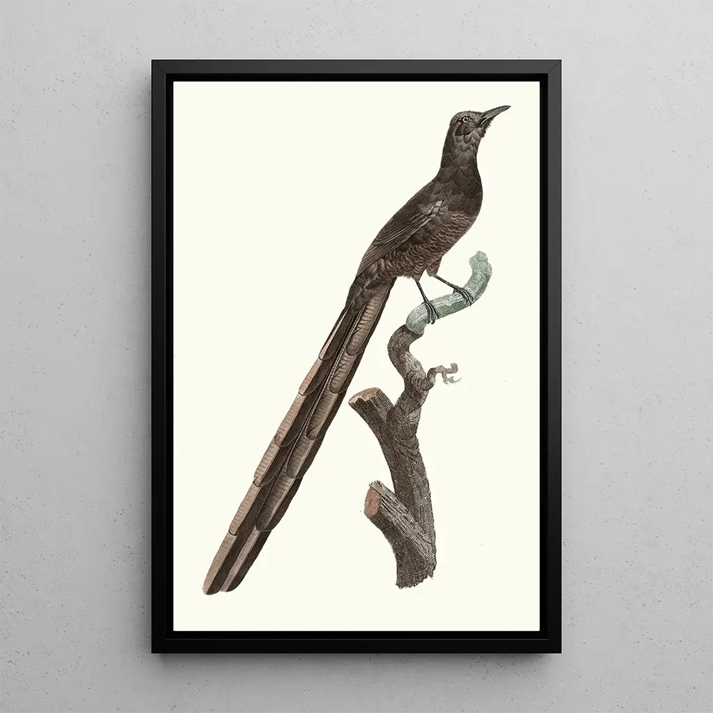 Jacques Barraband, aktiv i begyndelsen af det 19. århundrede, er kendt for sine kunsttryk af eksotiske fugle. Hans arbejde er en del af den naturalistiske bevægelse, hvor nøje observation af naturen er afgørende. Påvirket af de botaniske og zoologiske opdagelser i sin tid, formåede han at forene videnskabelig præcision med kunstnerisk følsomhed. Barraband samarbejdede med naturalister for at dokumentere faunaen, og hans værker er blevet referencepunkter inden for feltet. Femelle de la Pie de paradis er et ikonisk eksempel på hans stil, der kombinerer realisme og æstetik.