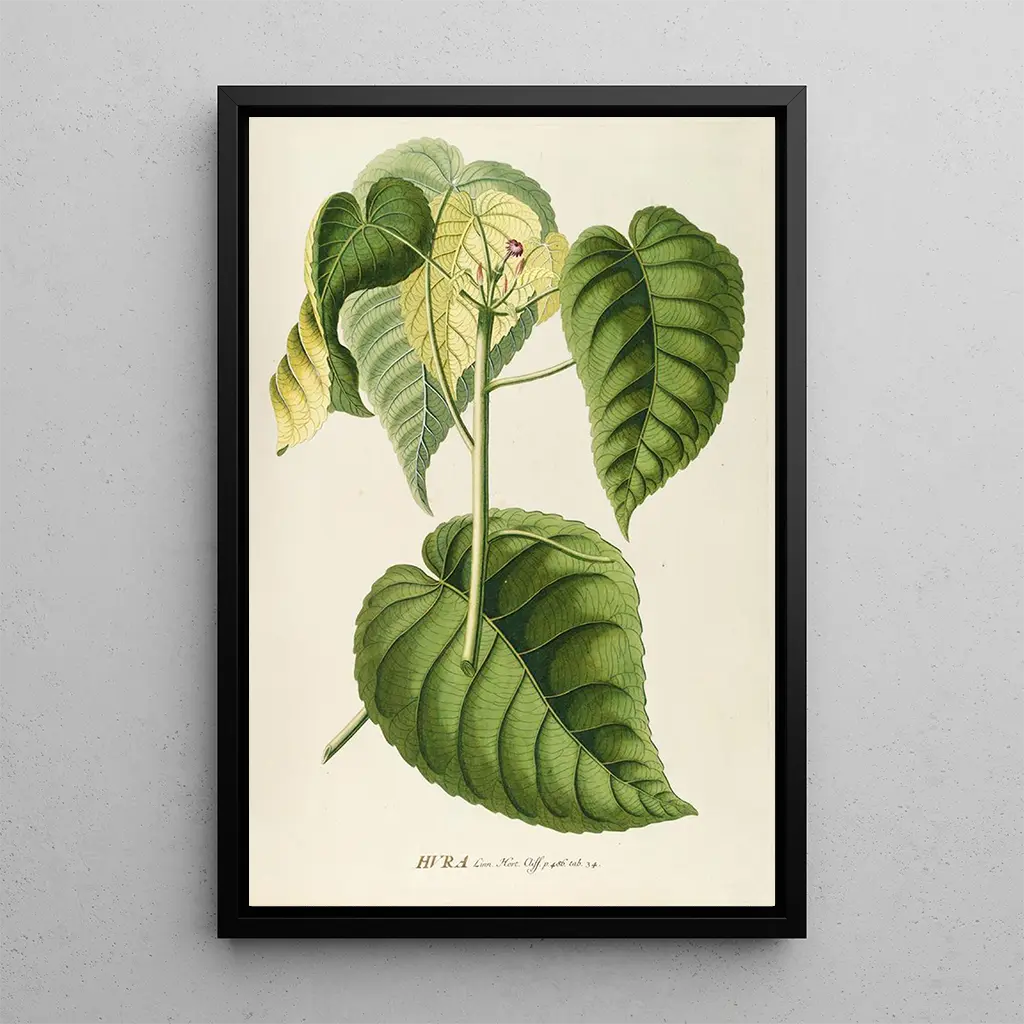 Kunsttrykket Hura af Georg Dionysius Ehret tager os med til hjertet af en fængslende botanisk repræsentation. Dette værk fremhæver planten Hura med sine organiske former og rige farver, der fremkalder en følelse af vitalitet. Nuancerne af grønt og brunt, kombineret med indslag af mere livlige farver, skaber et harmonisk og dynamisk billede. Den graveringsteknik, Ehret bruger, gør det muligt at gengive hver detalje med imponerende præcision, hvilket inviterer betragteren til at udforske naturens finurligheder. Dette værk er en sand hyldest til den vegetative skønhed, der fejrer mangfoldigheden og kompleksiteten i den naturlige verden.