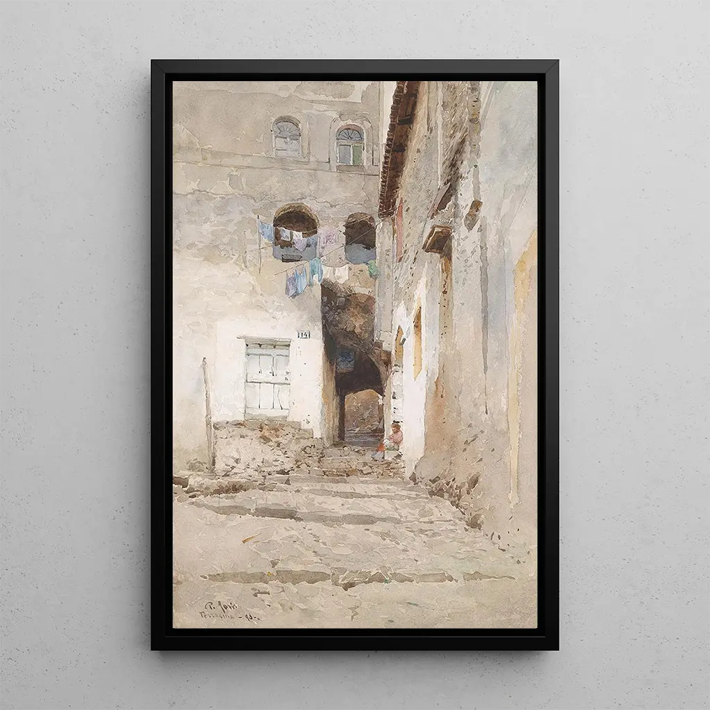 Kunsttrykket af "Maisons à Terracina" er et dekorativt stykke, der vil tilføre et strejf af autenticitet til dit hjem. Uanset om det er i stuen, spisestuen eller på kontoret, fremkalder dette lærred skønheden i de italienske landskaber og inviterer til drømme. Den enestående trykkvalitet og trofasthed mod det originale værk sikrer en slående visuel gengivelse. Ved at integrere dette kunsttryk i din indretning skaber du et varmt og inspirerende rum, samtidig med at du fejrer italiensk kunst og kultur. Dette lærred er det perfekte valg for kunstelskere og rejsende.