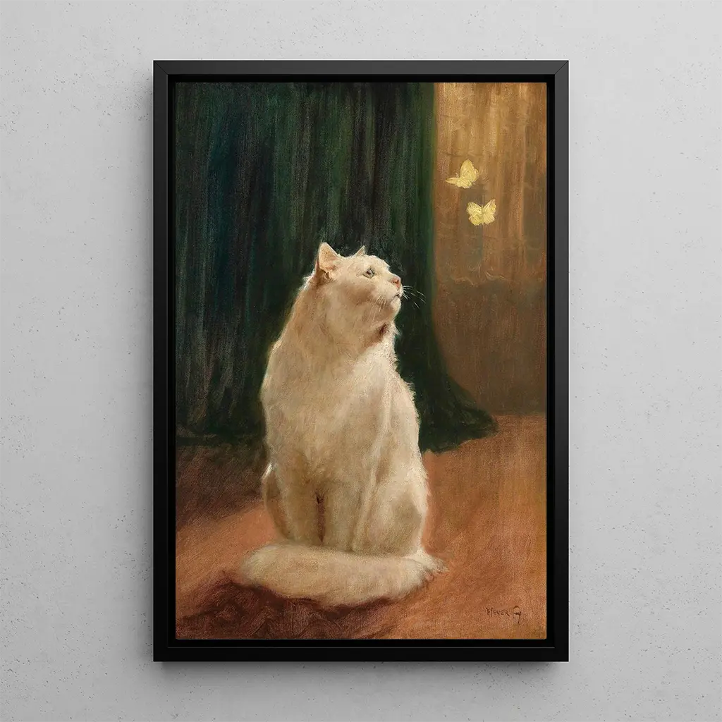 Kunsttryk | Chat blanc et deux papillons citron - Arthur Heyer
