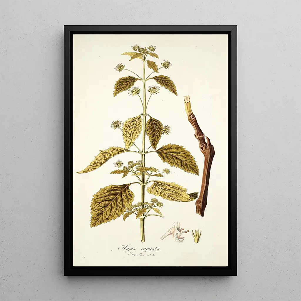 Kunsttrykket af Hyptis capitata er et ideelt dekorativt stykke til at forskønne stuen, kontoret eller soveværelset. Dets trykkvalitet sikrer en bemærkelsesværdig trofasthed mod detaljerne i det originale værk, samtidig med at det tilfører et strejf af friskhed og natur til dit hjem. Med sin æstetiske appel integreres dette lærred let i forskellige dekorationsstile, fra det klassiske til det moderne. Ved at vælge dette kunsttryk vælger du et værk, der fremhæver naturens skønhed og samtidig beriger dit opholdsrum.
