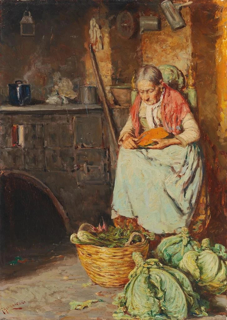 Giuseppe Giardiello, kunstner fra det 19. århundrede, er kendt for sine værker, der hylder hverdagslivet og genrebilleder. Påvirket af realismen i sin tid, har han formået at fange øjeblikke fra livet med stor følsomhed. Hans arbejde afspejler en dyb forståelse for menneskelige følelser og sociale interaktioner. Selvom han er mindre kendt end nogle af sine samtidige, har Giardiello efterladt et betydningsfuldt aftryk i det kunstneriske landskab ved at fremhæve skønheden i de enkle øjeblikke. Hans værker, som "I køkkenet", vidner om en æra, hvor kunsten spejlede hverdagens realiteter.