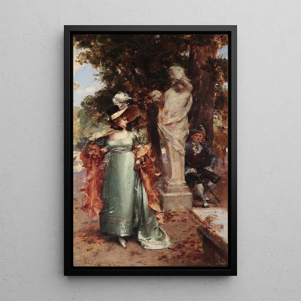 Kunsttrykket af "I parken" er et perfekt valg for at forskønne dit hjem. Uanset om det er i en stue, et kontor eller et soveværelse, tilføjer dette billede et strejf af friskhed og ro. Dets trykkvalitet sikrer en bemærkelsesværdig trofasthed over for detaljerne og farverne i det originale værk, hvilket gør det muligt fuldt ud at værdsætte Kaemmerers geni. Med sin tiltalende æstetik tilpasser dette lærred sig forskellige dekorationsstile, fra det traditionelle til det moderne, og gør det til en værdifuld tilføjelse til din kunstsamling.