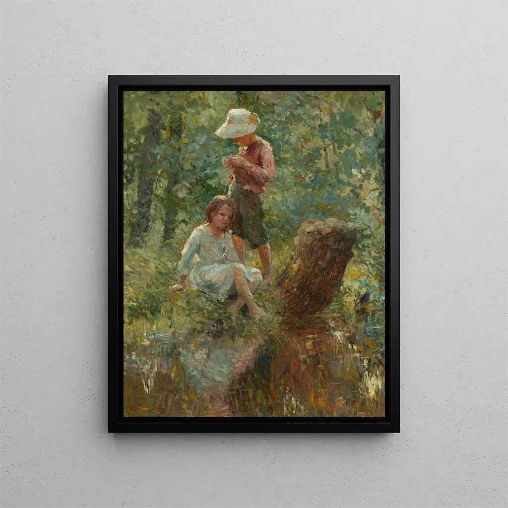 Adam Emory Albright, født i 1862, er en amerikansk maler, hvis værker tilhører realismen. Uddannet ved École des Beaux-Arts i Paris, har han formået at integrere lektionerne fra de store europæiske mestre, mens han udviklede en personlig stil, dybt forankret i den amerikanske natur. Albright blev påvirket af impressionismen, men valgte at distancere sig for at skabe værker, der skiller sig ud ved deres klarhed og detaljegrad. Hans passion for naturen og hans engagement i at fremstille de amerikanske landskaber troværdigt har givet ham varig anerkendelse. Ved at udstille landlige scener og skovrige landskaber har han formået at fange ånden i sin tid, samtidig med at han har inspireret mange samtidige kunstnere. Hans kunstneriske arv består, og "I skoven" er et perfekt eksempel på hans talent og unikke vision.