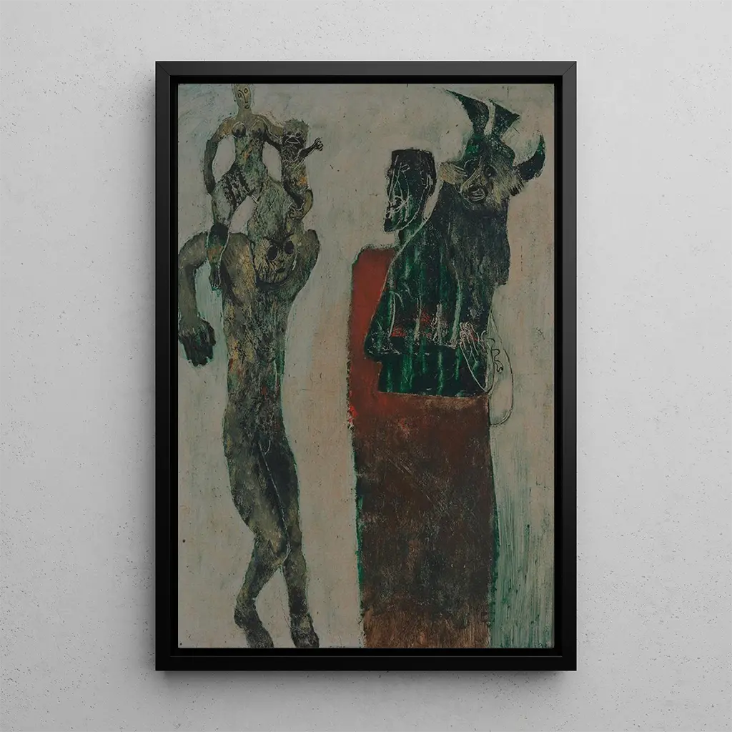"Idoler besatte" af Frits van den Berghe er et fængslende kunsttryk, der undersøger begrebet identitet gennem ikoniske figurer og symbolske motiver. Farvepaletten, der skifter mellem mørke nuancer og lyse glimt, skaber en atmosfære, der er både mystisk og foruroligende. Personerne, ofte fanget i udtryksfulde positurer, synes at bære vægten af deres historie og vækker dybtliggende minder. Kunstnerens teknik, der dygtigt blander abstraktion og figurativitet, forstærker den følelsesmæssige impact af dette kunsttryk og inviterer beskueren til en dyb introspektion.