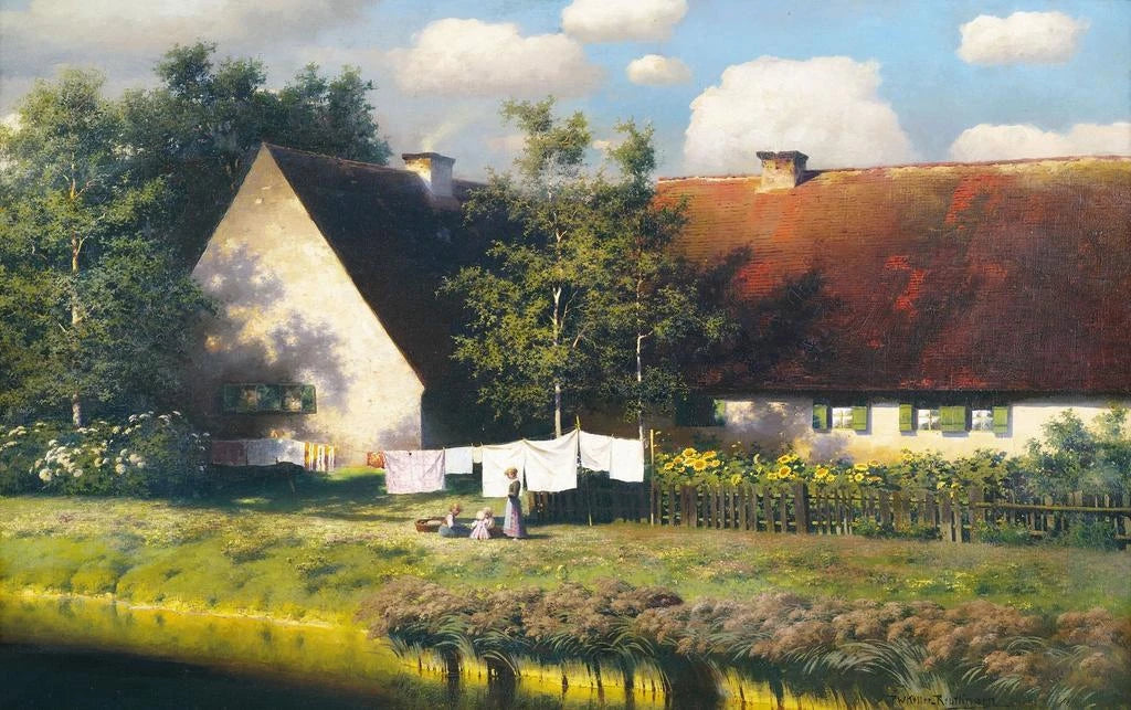 Sommeridyll på gården - Paul Wilhelm Keller-Reutlingen