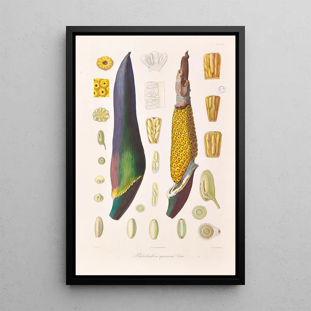 Kunsttrykket af Icones Aroidearum Pl09 er et ideelt dekorativt stykke til at berige dit hjem. Uanset om det er i stuen, på et kontor eller i et soveværelse, tilføjer dette lærred et strejf af friskhed og elegance. Kvaliteten af kunsttrykket sikrer en trofast gengivelse af farver og detaljer, hvilket gør det muligt fuldt ud at værdsætte skønheden i aroides. Ved at integrere dette værk i din indretning skaber du et inspirerende og beroligende rum, samtidig med at du fejrer naturens rigdom. Dette lærred er et perfekt valg for botanik- og kunstelskere.