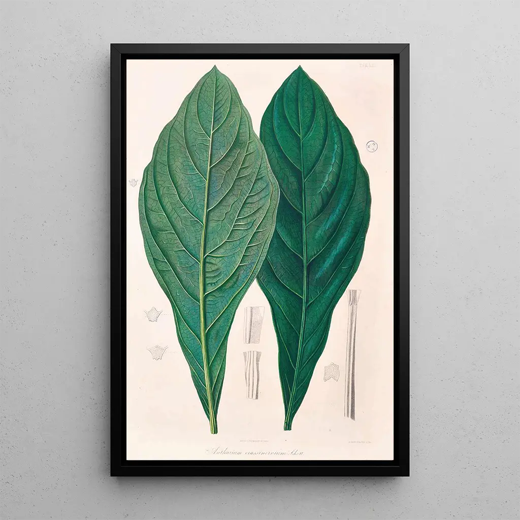 Kunsttrykket "Icones Aroidearum Pl12" er et dekorativt stykke, der vil berige ethvert rum, uanset om det er en stue, et kontor eller et soveværelse. Dets trykkvalitet sikrer en trofast gengivelse af farver og detaljer fra det originale værk, hvilket bringer et strejf af natur ind i dit hjem. Med sin æstetiske appel bliver dette lærred et fængslende fokuspunkt, der vækker interesse og nysgerrighed hos besøgende. Ved at vælge dette kunsttryk går du efter en dekoration, der kombinerer kultur, videnskab og skønhed, samtidig med at den fejrer den vegetative verdens pragt.
