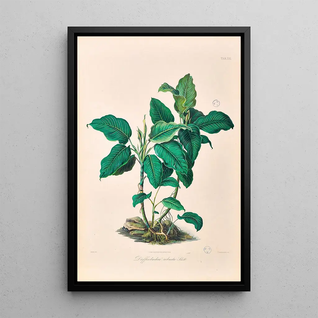 Reproduktionen af "Icones Aroidearum Pl21" er et ideelt dekorativt stykke til at tilføre et strejf af natur til dit hjem. Uanset om det er i stuen, på kontoret eller i soveværelset, vil dette kunstværk fange opmærksomheden og vække beundring. Dets trykkvalitet sikrer en trofast gengivelse af farver og detaljer i det originale værk, hvilket gør det muligt at nyde dets skønhed fuldt ud. Med sin æstetiske appel bliver dette lærred et centralt element i din indretning, og skaber en varm og indbydende atmosfære. Forkæl dig selv med dette kunstværk for at berige dit opholdsrum med et unikt botanisk præg.