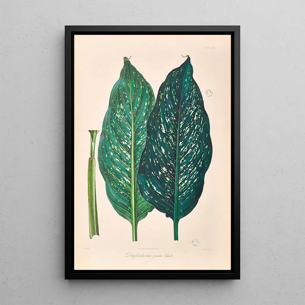 Reproduktionen af "Icones Aroidearum Pl25" er et ideelt dekorativt stykke til at berige dit hjem, uanset om det er i stuen, på kontoret eller i soveværelset. Det trykkede kvalitetsniveau sikrer en trofast gengivelse af farver og detaljer fra det originale værk, hvilket tilføjer et strejf af elegance og sofistikation til din indretning. Dette botaniske maleri, med sin æstetiske appel, inviterer til eftertanke og flugt, samtidig med at det tilfører et strejf af naturlig friskhed til dit rum. At vælge dette lærred er at vælge at integrere et element af historie og videnskab i din indretning, samtidig med at du fejrer plantens skønhed.