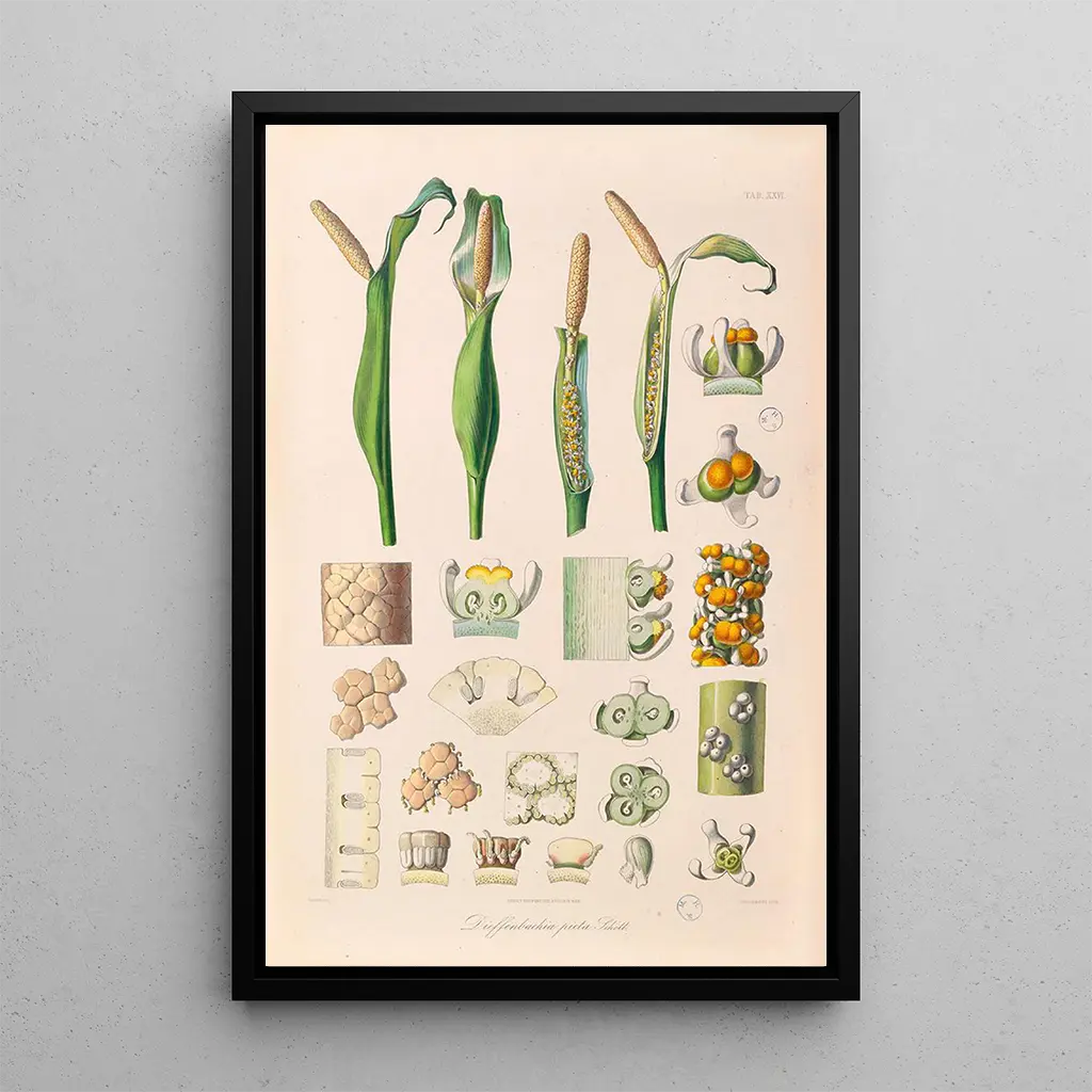 Kunsttrykket af "Icones Aroidearum Pl26" er et ideelt valg for dem, der ønsker at forskønne deres opholdsrum. Uanset om det er i stuen, på kontoret eller i soveværelset, tilføjer dette lærred et strejf af natur og elegance. Dets trykkvalitet sikrer en trofast gengivelse af detaljerne og farverne i det originale værk, hvilket skaber en varm og indbydende atmosfære. Ved at integrere dette kunsttryk i din indretning tilføjer du ikke blot et æstetisk element, men også et stykke historie og videnskab, der vil fange dine gæsters opmærksomhed.