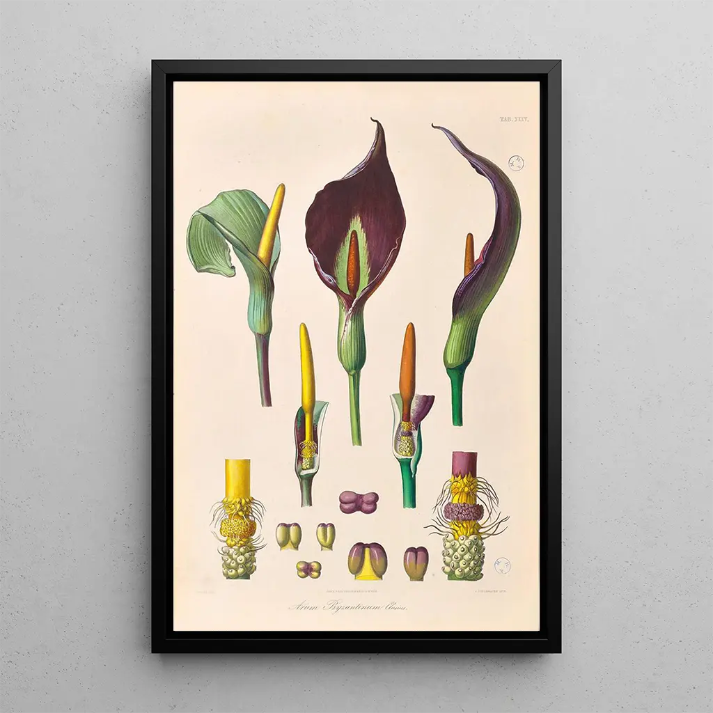Reproduktionen af "Icones Aroidearum Pl35" er et ideelt valg til at forskønne forskellige rum såsom stuen, kontoret eller soveværelset. Dens trykkvalitet sikrer en trofast gengivelse af de originale detaljer, hvilket gør det muligt fuldt ud at værdsætte skønheden i dette botaniske kunstværk. Ved at integrere dette billede i din indretning tilføjer du et strejf af elegance og natur til dit hjem. Det æstetiske tiltrækningskraft ved dette lærred ligger i dets evne til at skabe samtaler, samtidig med at det tilbyder en beroligende og inspirerende atmosfære.