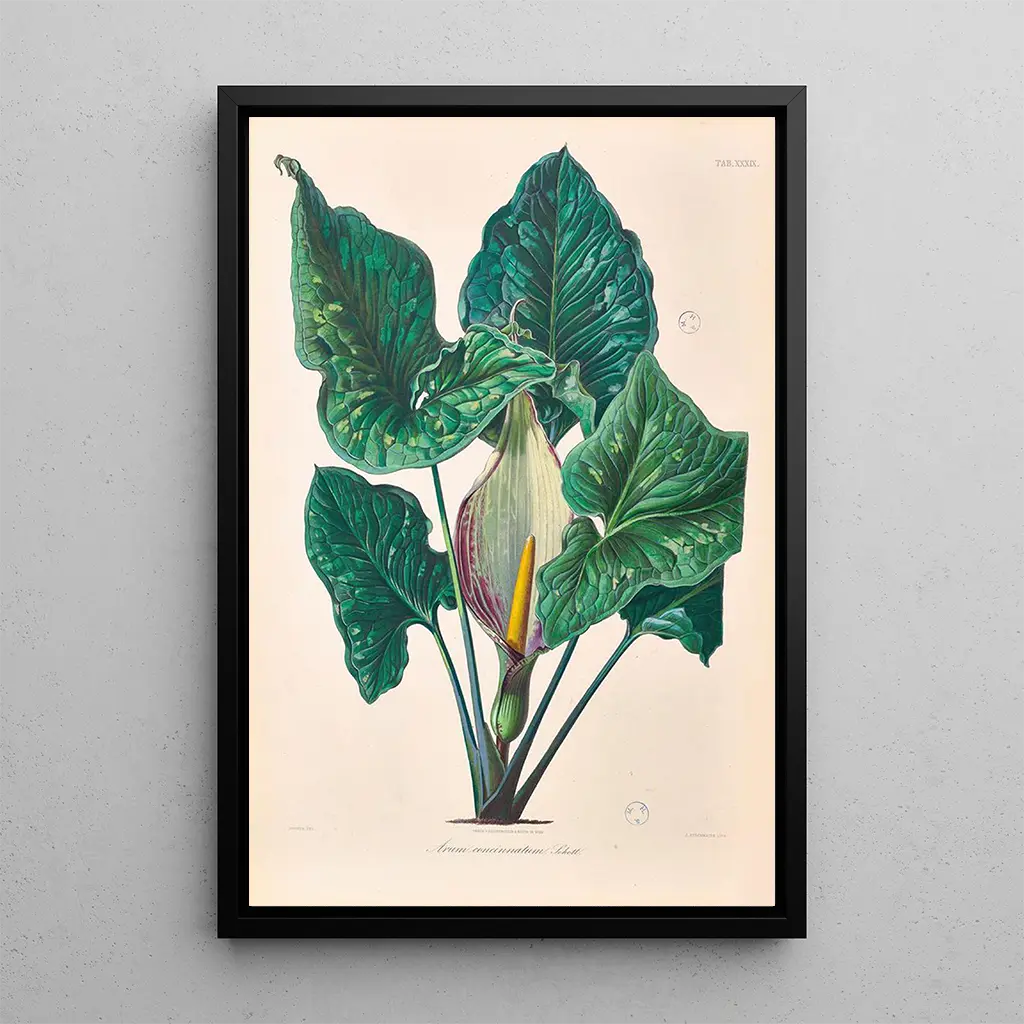 Kunsttrykket af Icones Aroidearum Pl39 er et ideelt dekorativt valg til forskellige opholdsrum, hvad enten det er stue, kontor eller soveværelse. Dets trykkvalitet sikrer en bemærkelsesværdig trofasthed mod de originale detaljer, samtidig med at det tilfører grønt og friskhed til dit hjem. Det æstetiske tiltrækningskraft af dette lærred gør det til et fængslende fokuspunkt, der vækker beundring blandt dine gæster. Ved at integrere dette kunstværk i din indretning giver du ikke blot et kunstværk, men også en hyldest til naturens skønhed, hvilket beriger dit daglige miljø.