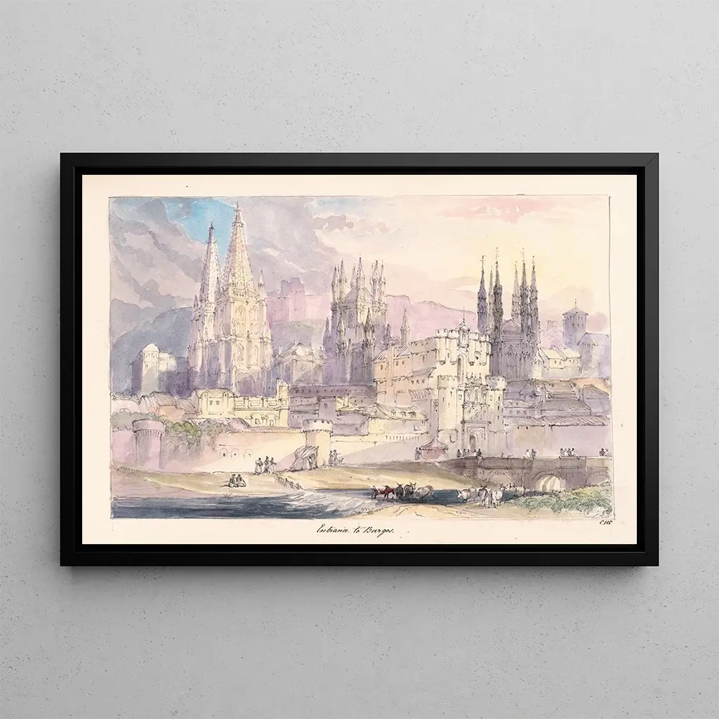 Reproduktionen af "Entrée de Burgos" er et dekorativt stykke, der passer perfekt ind i forskellige rum, uanset om det er en stue, et kontor eller et soveværelse. Dets trykkvalitet sikrer en trofast gengivelse af de originale detaljer, hvilket gør det muligt at nyde værket i al sin pragt. Med sine beroligende nuancer og sin rolige atmosfære tilføjer dette maleri et strejf af elegance og kultur til dit hjem. Det æstetiske tiltrækningskraft ved dette lærred gør det til et ideelt valg for dem, der ønsker at berige deres indretning og samtidig hylde Charles Hamilton Smiths kunstneriske arv.