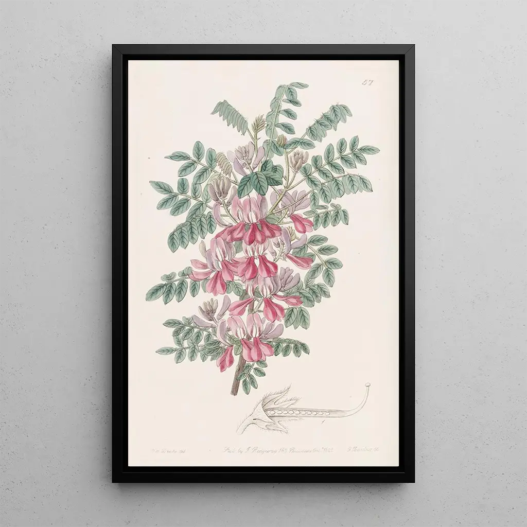 L'indigo dosua, en fascinerende plante, er gengivet med bemærkelsesværdig præcision af Sydenham Edwards. I dette værk blander dybblå nuancer sig med glimtende grønne strejf, hvilket skaber en atmosfære, der både er beroligende og opkvikkende. Akvarelteknikken gør det muligt at fange bladets finhed og stænglernes tekstur, hvilket giver en næsten taktil fornemmelse af denne art. Kunstneren formår at formidle naturens indre skønhed og inviterer betragteren til at forundres over biodiversitetens rigdom.
