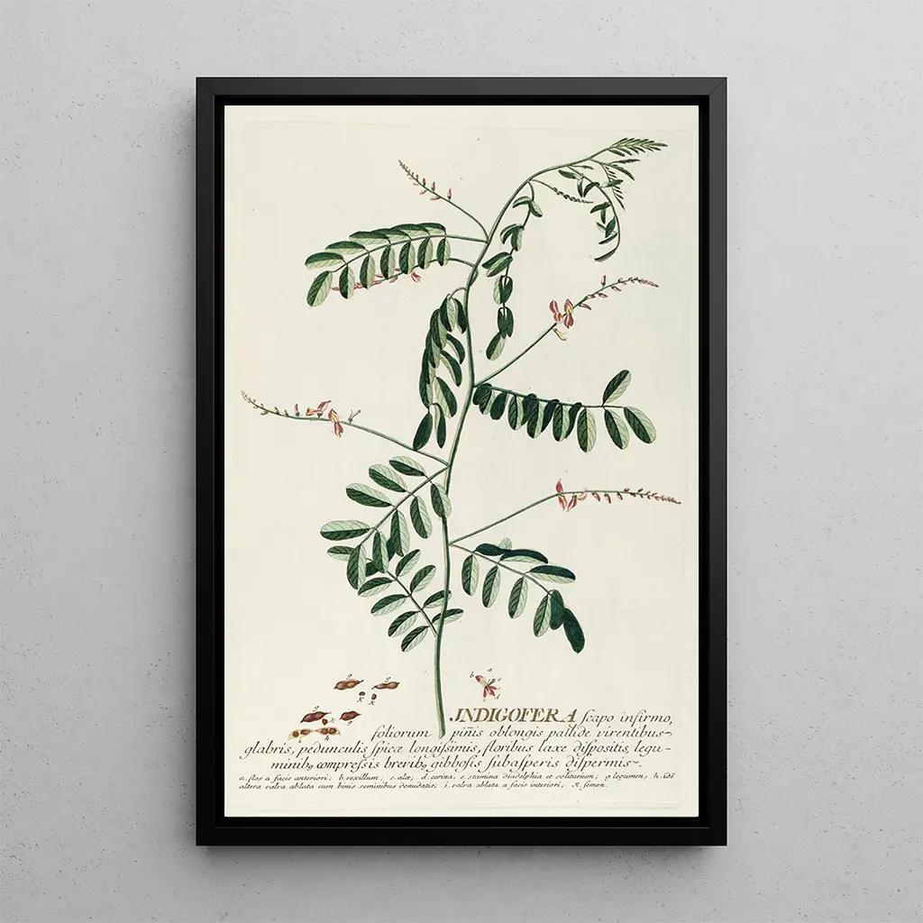 "Indigo-træ III" af Georg Dionysius Ehret er et værk, der fejrer plantens pragt gennem en omhyggelig og farverig gengivelse. Dette kunsttryk fremhæver strålende indigo nuancer, der symboliserer rigdommen i denne eftertragtede plante. Kompositionen er omhyggeligt sammensat, hver blad og blomst er gengivet med en præcision, der vidner om Ehrets talent. Atmosfæren, der udspringer af dette lærred, er både rolig og fængslende, hvilket inviterer betragteren til at dykke ned i den fascinerende botaniske verden.