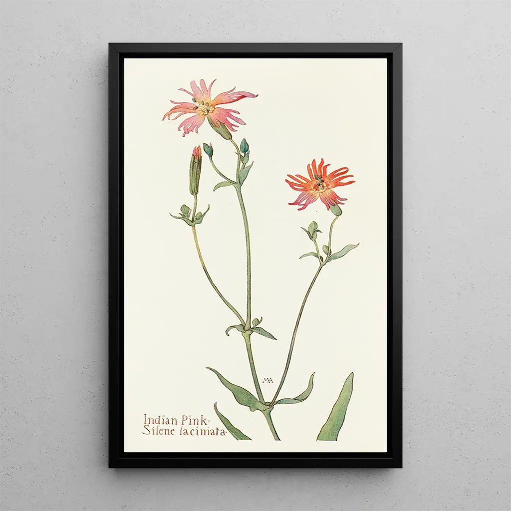Kunsttrykket "Indien rose" af Margaret Armstrong tager os med ind i en livlig blomsterverden, hvor nuancer af rosa og grøn smukt flettes sammen. Kompositionen, rig på detaljer, fremkalder en atmosfære af ro og naturlig skønhed. Blomsterne, smukt gengivet, virker næsten håndgribelige og inviterer betragteren til at komme nærmere og beundre hver enkelt kronblad. Armstrong anvender en maleteknik, der fremhæver farvernes lysstyrke, hvilket skaber et værk, der ånder af liv og glæde. Dette maleri er en sand hyldest til naturen og fanger essensen af blomstringen.